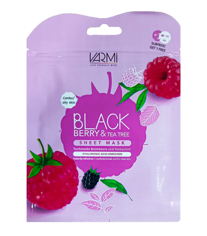 ماسک صورت نقابی وارمی BLACK BERRY & TEA TREE | پاکسازی و آبرسانی پوست