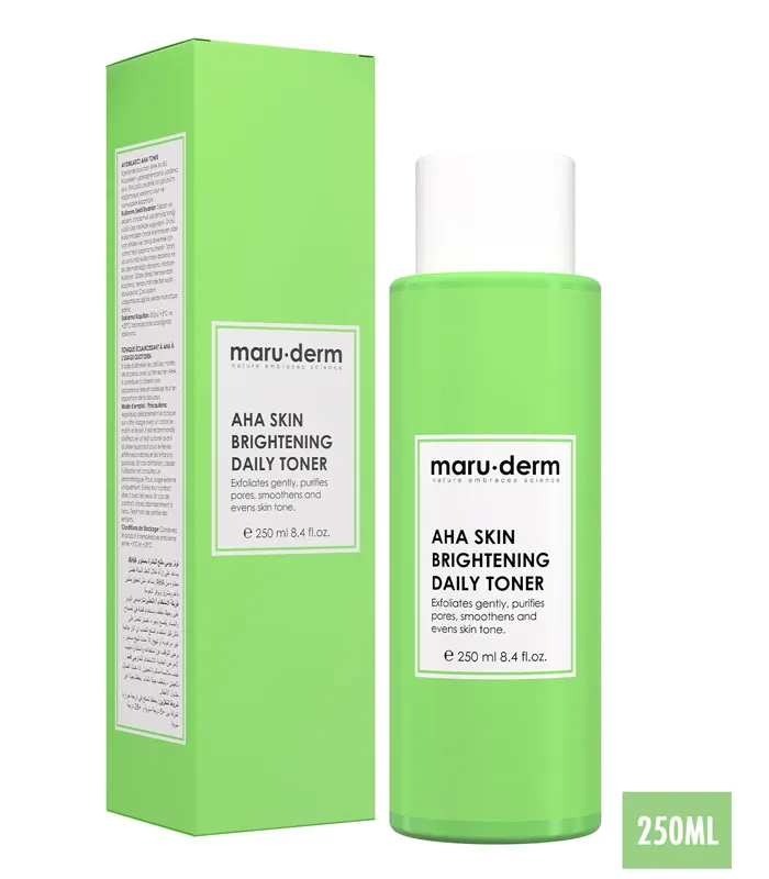 تونر سبز مارودرم با نام «AHA Skin Brightening Daily Toner» محصولیست که برای داشتن پوستی روشنتر، یکدستتر و تازه طراحی شده است. این تونر حاوی ترکیبی از اسیدهای AHA مانند گلیکولیک و لاکتیک اسید است که به حذف سلولهای مرده و بهبود بافت پوست کمک میکند. اگر پوستتان کدر، خسته یا رنگش ناهمگون شده است، این محصول میتواند گزینهای مناسب برای گنجاندن در روتین مراقبتیتان باشد.