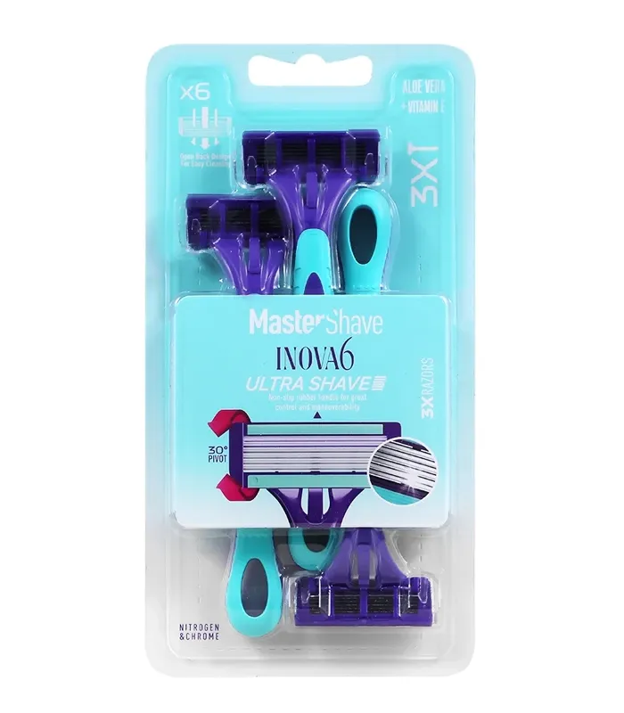 تیغ اصلاح مستر شیو Master Shave | مدل INOVA6 | بسته 6 لبه 3 عددی
