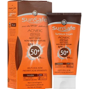 کرم ضدافتاب بی رنگ سان سیف SUNSAFE مدل ACNEIC حجم 50 میل